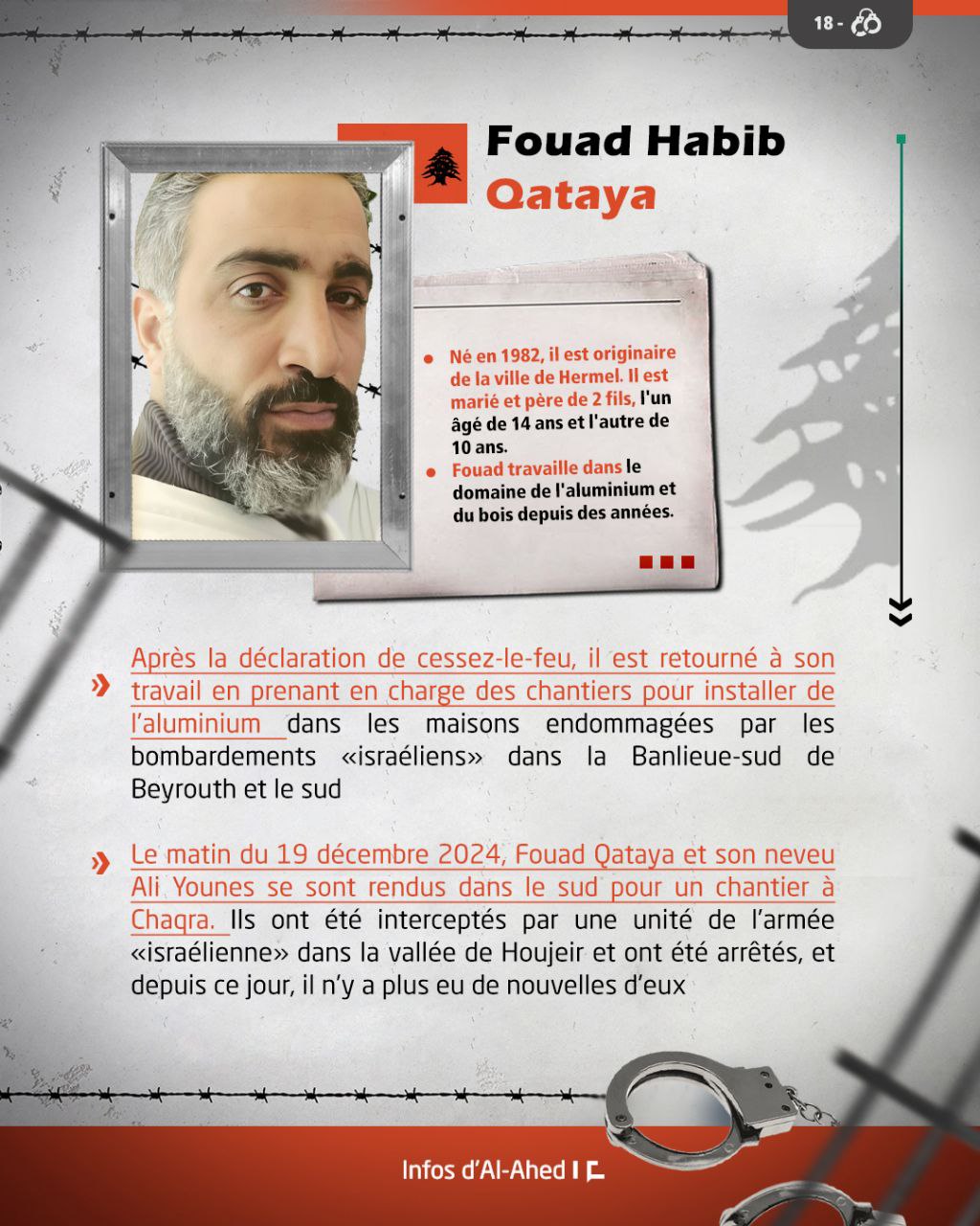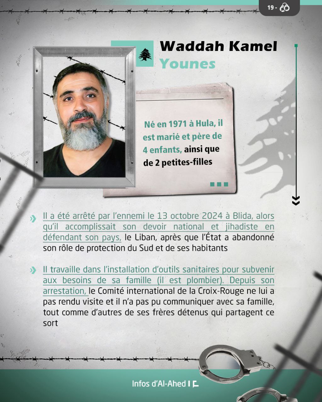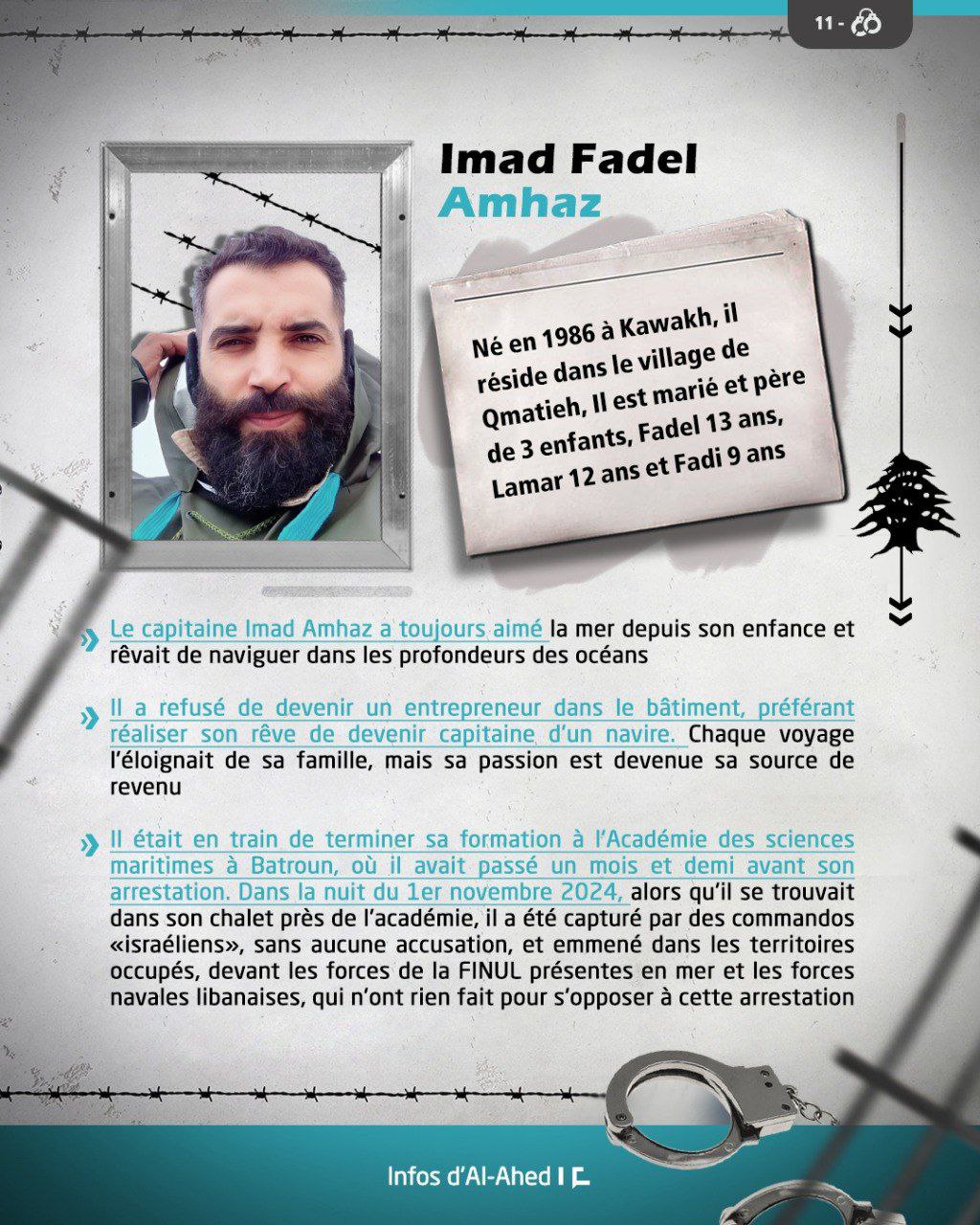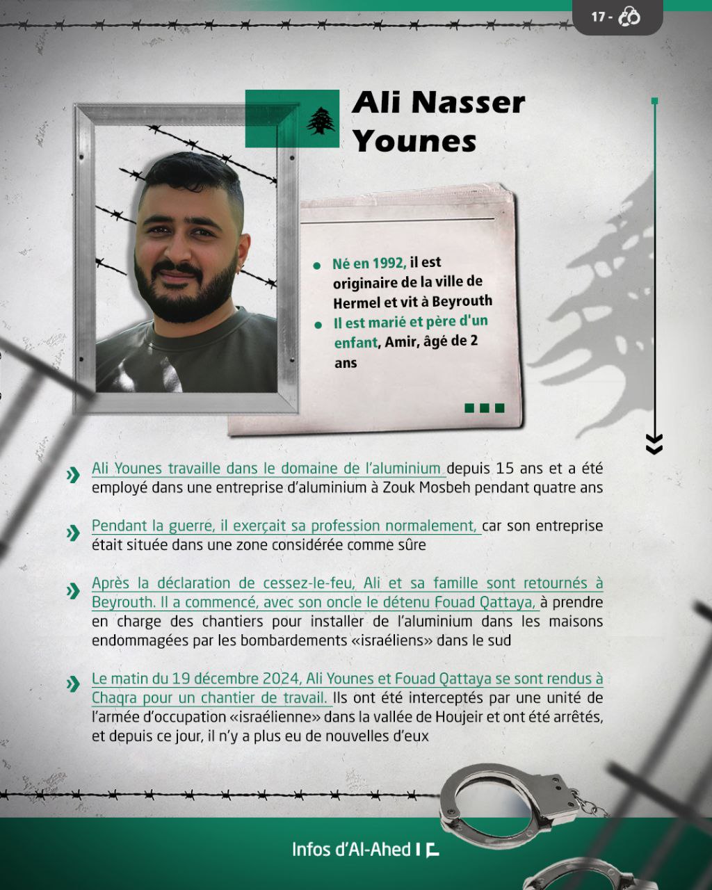 La campagne de l'Association, qui semble se poursuivre dans l'espoir d'atteindre sa demande humanitaire et nationale auprès des instances décisionnelles de l'État libanais, publie des données visant à informer le peuple libanais sur les 19 captifs et sur la manière dont leur capture a été faite.