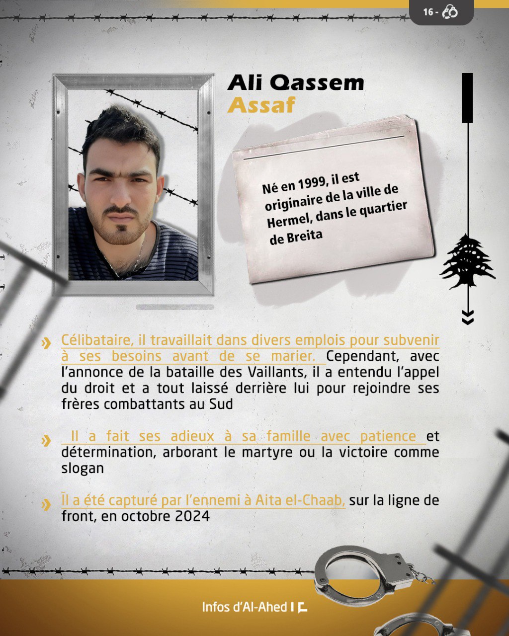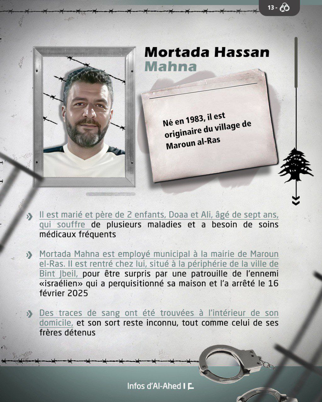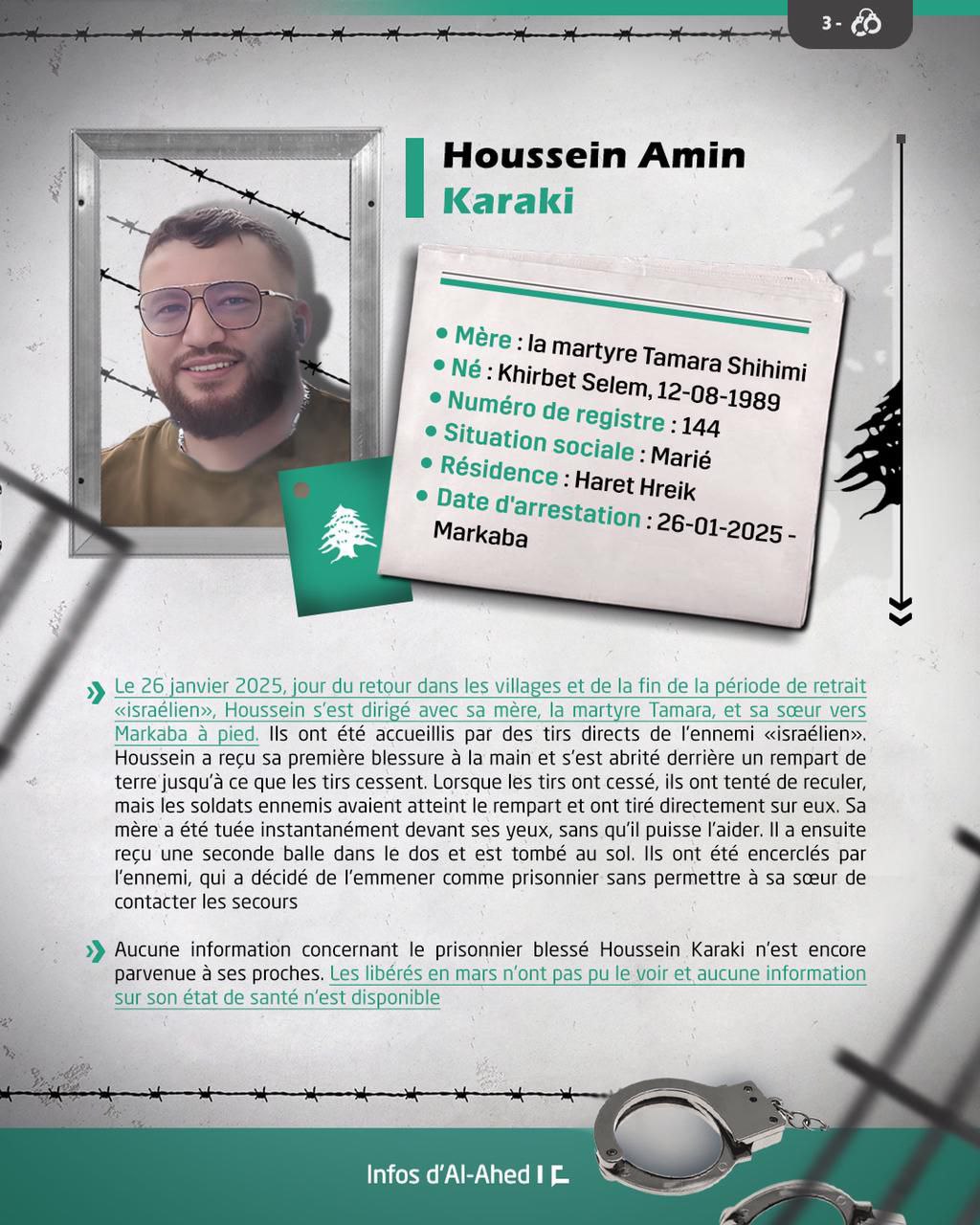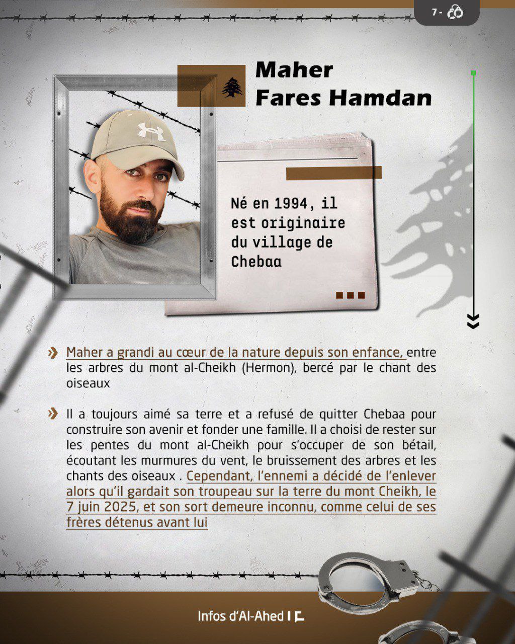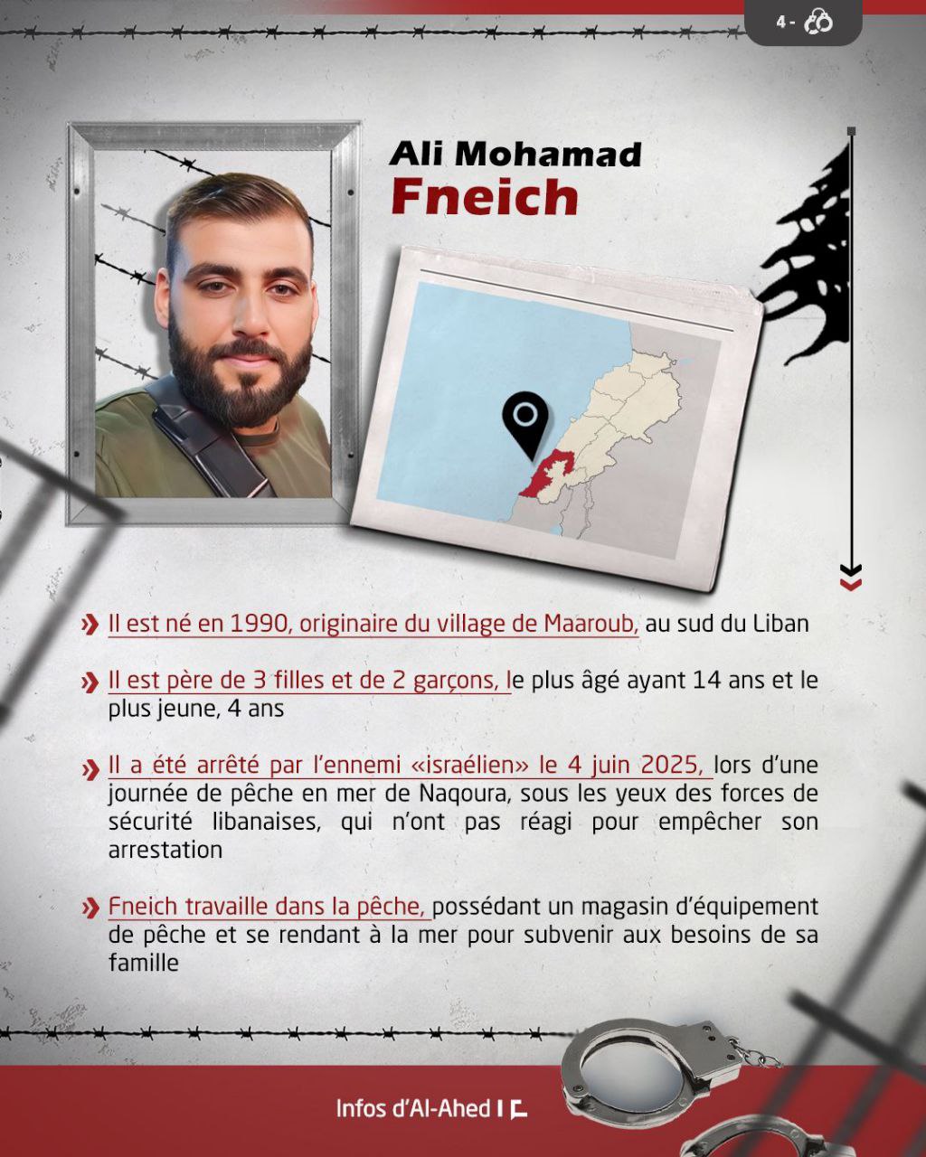 La campagne de l'Association, qui semble se poursuivre dans l'espoir d'atteindre sa demande humanitaire et nationale auprès des instances décisionnelles de l'État libanais, publie des données visant à informer le peuple libanais sur les 19 captifs et sur la manière dont leur capture a été faite.