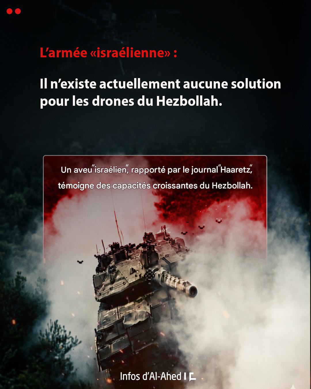 «Haaretz» a souligné les capacités militaires croissantes du Hezbollah. L’armée d’occupation «israélienne» a affirmé qu’il n’existe actuellement aucune solution pour les drones du Hezbollah, selon le quotidien «israélien».